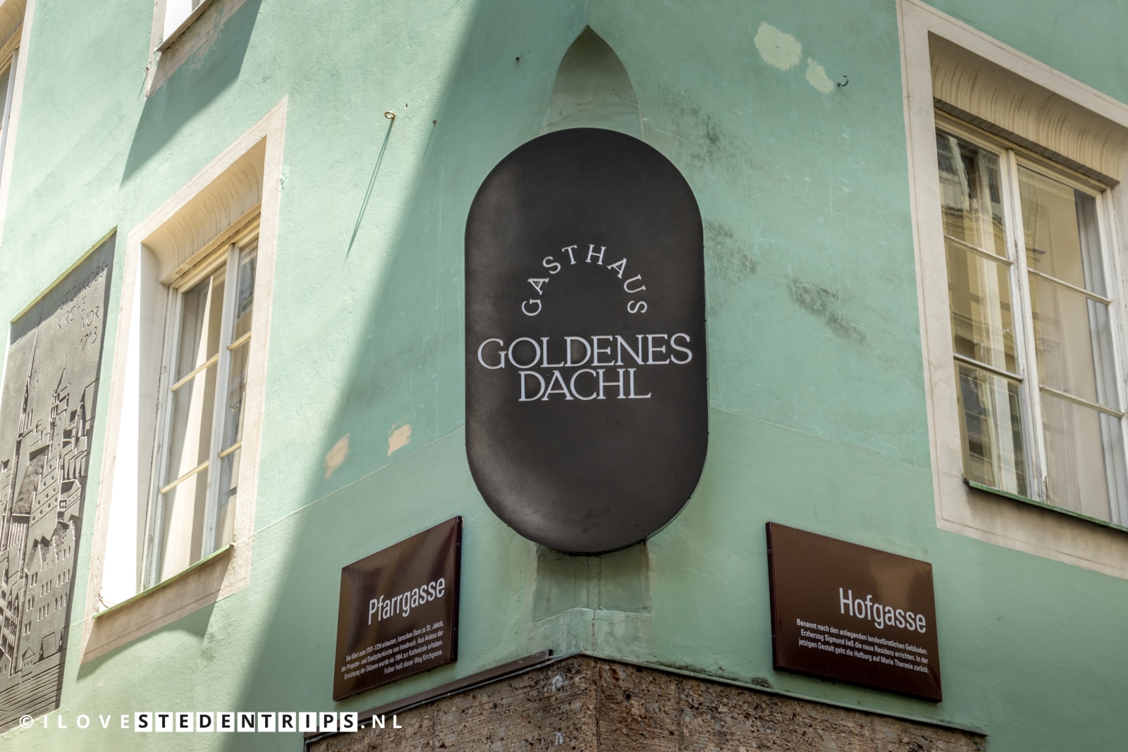 Wanneer je door het oude centrum van Innsbruck loopt kan je het bijna niet missen, Het Gouden Dak! Vanaf diverse kanten kan je het op een zonnige dag al zien glimmen in de verte. Wanneer je dichterbij komt zal je zien dat het hele middeleeuwse bouwwerk is versierd met figuren en voorstellingen.