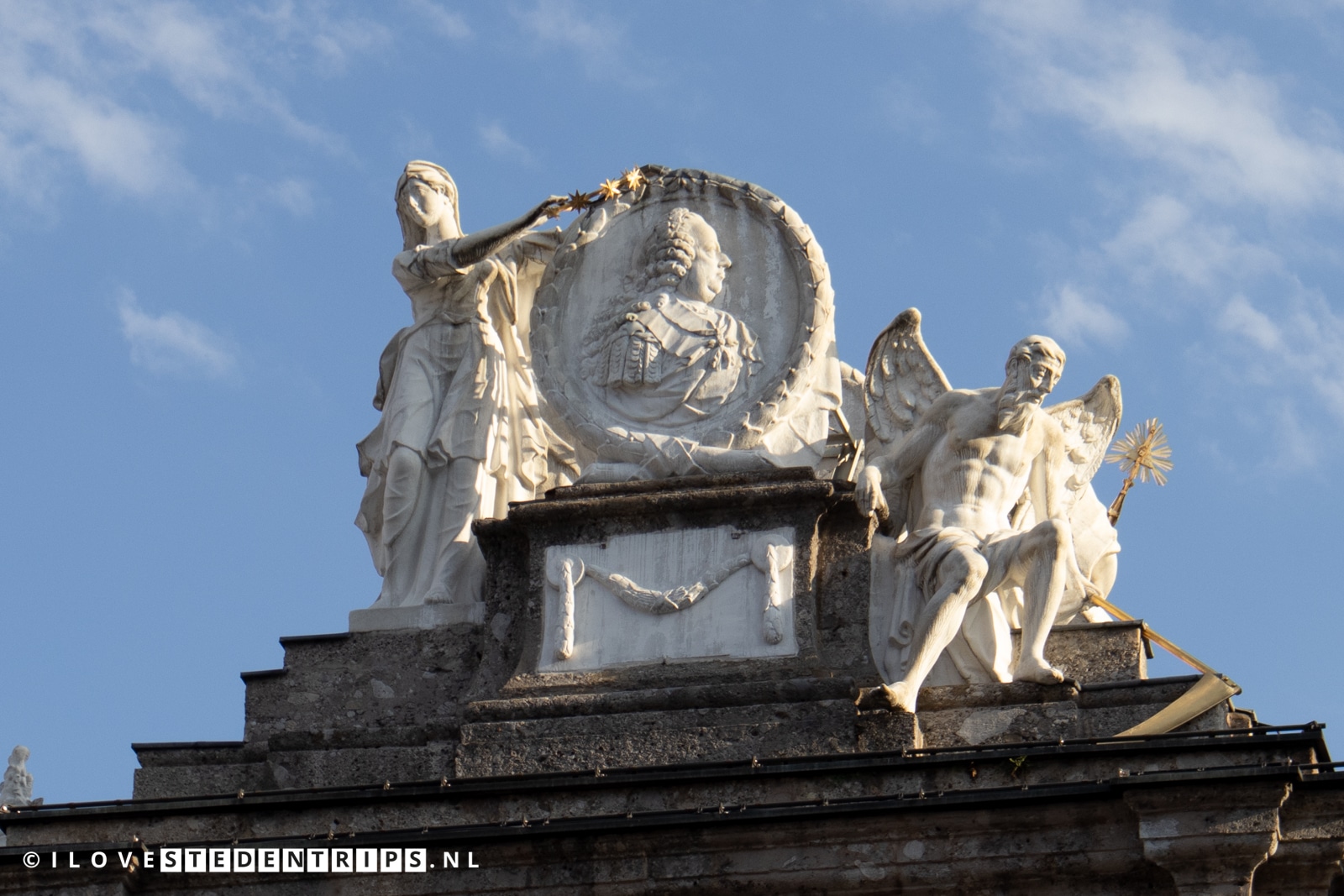 Wanneer je de noordelijke kant van de Triumphpforte van dichtbij gaat bekijken dan zie je een eerbetoon aan het leven van keizer Frans I Stefan.